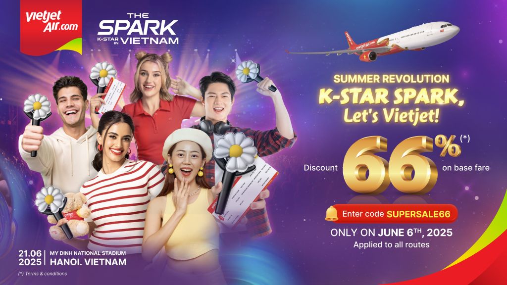 This limited-time offer is part of Vietjet’s celebration of the K-Star Spark in Vietnam 2025 international music festival, where the airline proudly serves as the official airline partner. The event will take place in Hanoi on June 21, 2025.